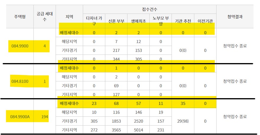 적은 물량을 공급하는 경우에는 기타 지역은 당첨이 거의 불가하다. 그럼에도 불구하고 천세대가 넘는 분들이 청약을 신청 한 부분은 아쉬움이 남는다. 청약 전 꼼꼼하게 확인하자.