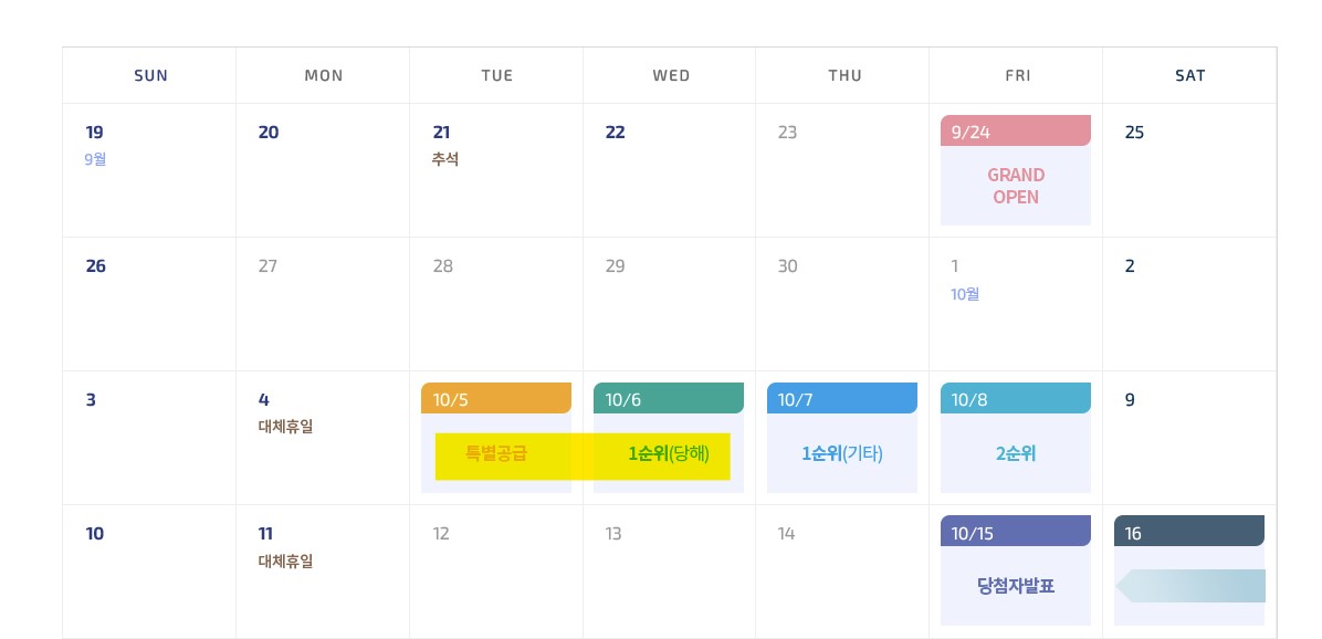 특별공급 | 10월5일 |