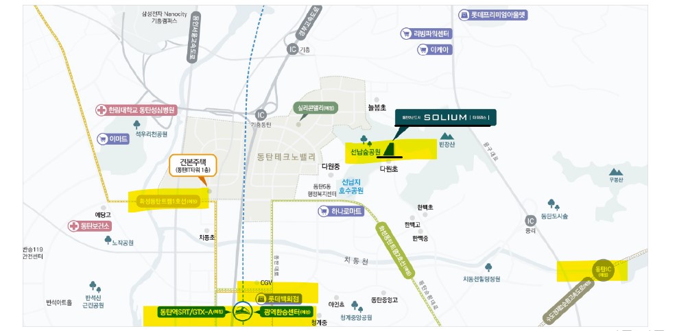 동탄신도시는 입지 분석이 굳이 필요 없는 지역입니다. SRT, GTX, 트램 등 교통호재가 많은 지역입니다. 초등학교는 단지 앞에 있으며 중, 고등학교는 모두 도보권에 있습니다. , 단지 주변에는 산과 공원이 둘러싸여 있습니다. 역까지는 다소 거리는 있지만, 거주목적이라면 쾌적한 환경을 누릴 수 있는 위치입니다. 입주 시점에는 동탄신도시의 쇼핑, 문화 인프라를 모두 누릴 수 있을 듯합니다.
