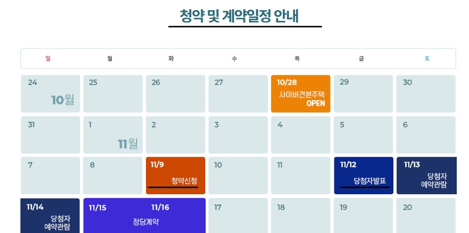 | 입주자 모집공고 | 10월 28일 |