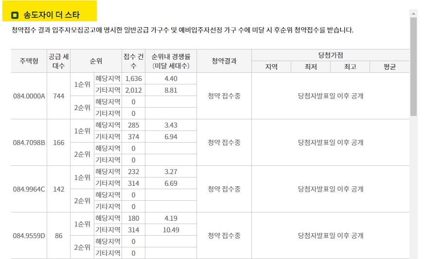 송도자이 더 스타 청약 결과, 경쟁률, 당첨자 발표일 포스팅 끝.