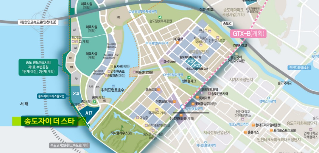 | 교통 | GTX-B (예정) KTX송도역(예정) 수도권 제2순환고속도로(계획) |