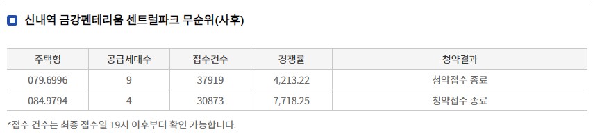 이상 신내역 금강펜테리움 센트럴파크 줍줍 무순위 청약 결과 경쟁률 포스팅 끝