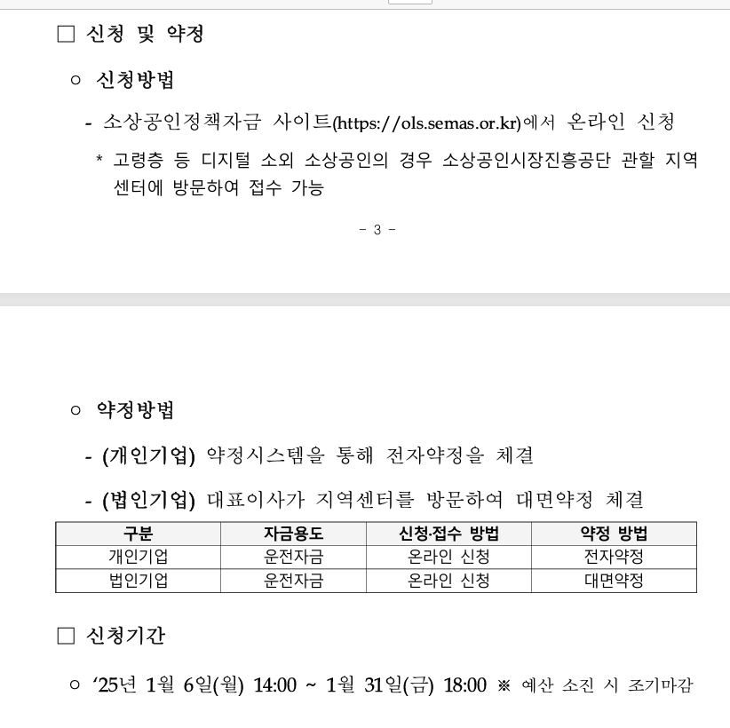 | 신청방법 | 소상공인정책자금 누리집에서 신청 |