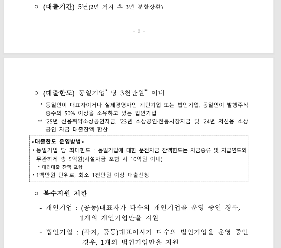 중저신용 소상공인 직접대출 지원 대상 자격 조건