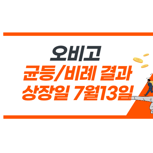 7월 2일 오비고 공모주 청약이 마감됐다. 최근 상장한 아모 센스가 예상과 다르게 상장일 상한가를 기록했다. 이는 다음 공모주인 오비고에 영향을 끼쳤고, 좋은 청약 결과로 이어졌다. 그럼 오비고 공모주 청약 경쟁률, 균등/비례 배정 및 상장일 전망을 살펴보자.