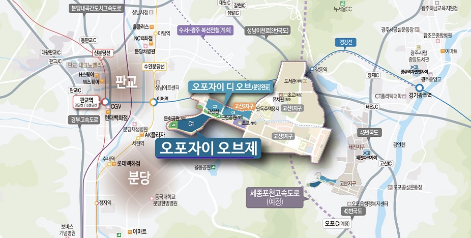 고산 2 지구, 오포 자이 오브제는 지상 25층 10개 동 927세대를 분양합니다. 경기 광주역을 이용하면 판교역까지는 25분이면 이동이 가능합니다. 다만, 단지에서 경기 광주역까지는 다소 거리가 있는 편입니다. 세종 포천 고속도로가 건설 예정이며, 단지 주변에는 근린공원이 예정되어 있어 거주목적이라면 미니신도시답게 환경은 상당히 좋습니다.