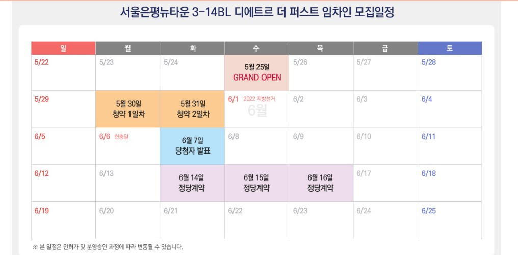| 특별공급, 일반공급 청약 | 5월 30 ~ 31일 이틀 간 진행 |