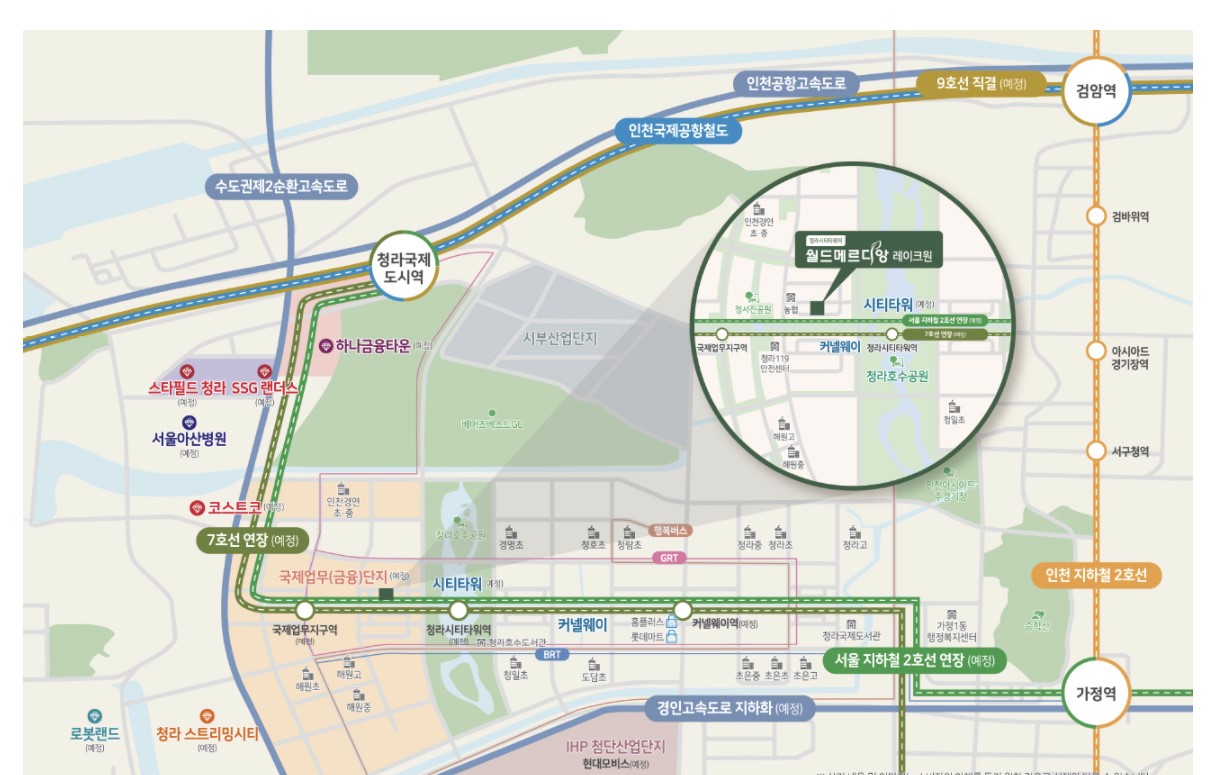 | 인프라 | 청라 국제도시 인프라 호수공원, 커넬웨이, 스타필드 등 |