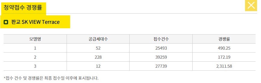 판교 SK뷰 테라스 본계약 경쟁률, 당첨확률
