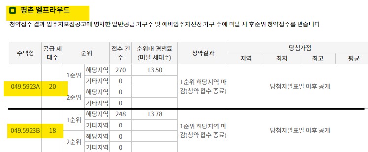 이상 평촌 엘프 라우드 일반공급 경쟁률, 청약 결과 포스팅 끝.
