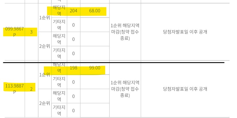 99P 타입 68대1 , 113P 타입은 99대 1의 경쟁률을 기록하였다. 당첨 시 가장 높은 수익이 기대가 되는 P타입에 대한 인기가 실감된다.