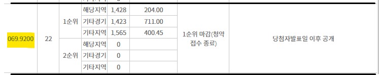 69 타입 역시 높은 경쟁률을 기록하였다. 60 타입과 비슷한 수준으로 청약 신청이 들어왔다.