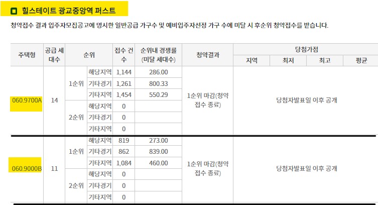 이상 힐스테이트 광교 중앙역 퍼스트 일반공급 경쟁률, 청약 결과 포스팅 끝.