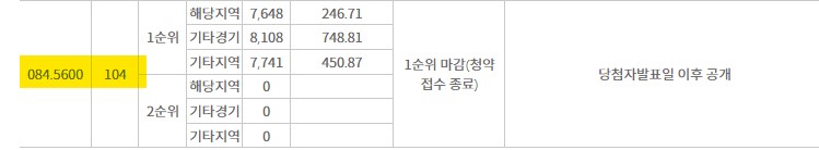84 타입은 104세대를 공급, 그에 비례하여 수도권에서 무려 2만 명이 넘는 청약자가 신청을 하였다. 경쟁률은 60,69 타입과 비슷하다.