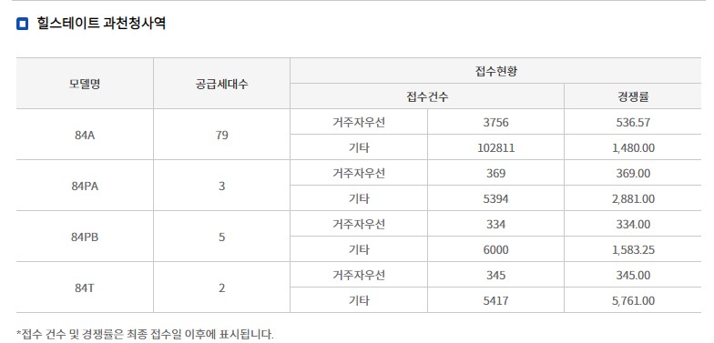 힐스테이트 과천청사역 오피스텔 청약 결과, 군별 경쟁률