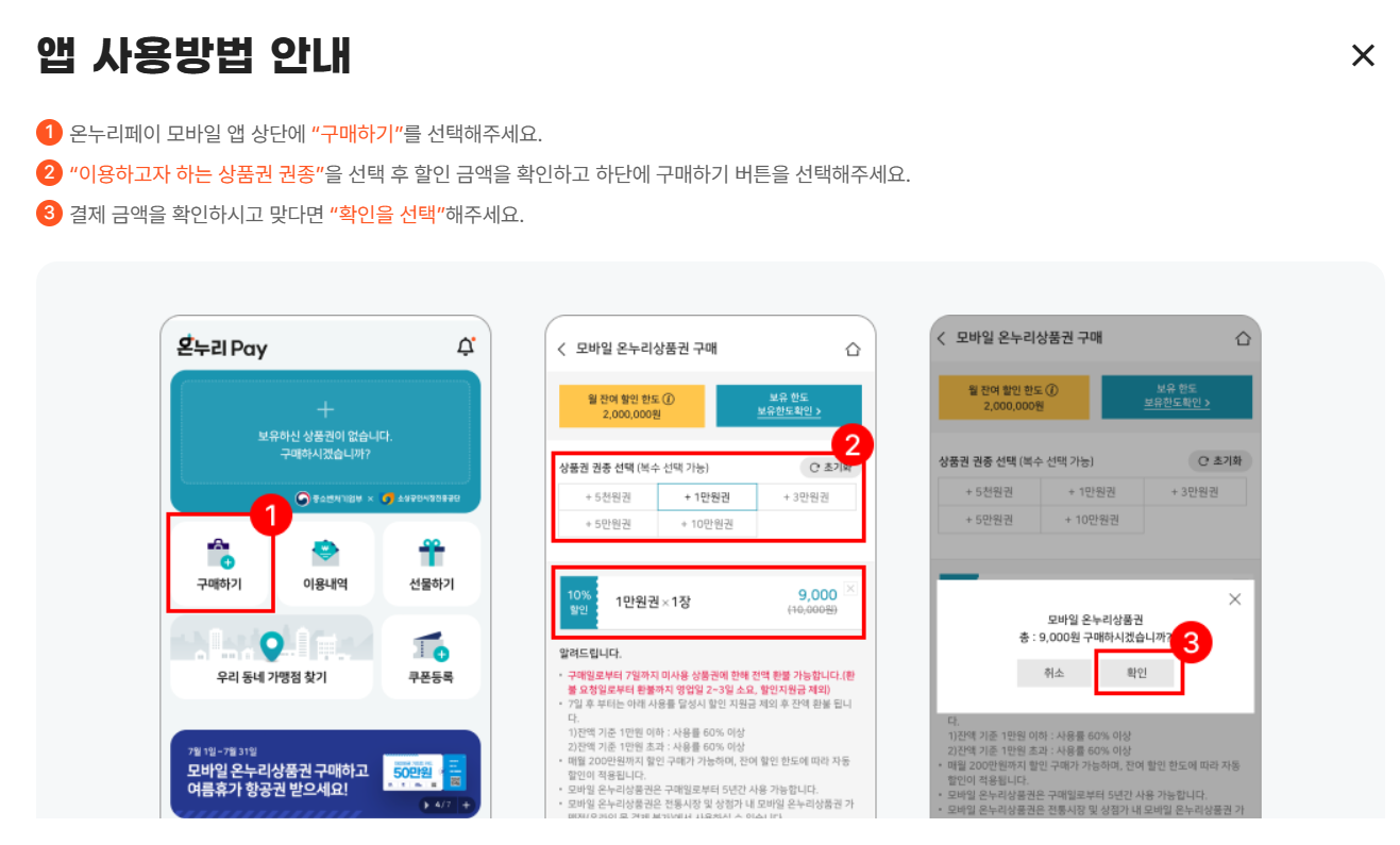 모바일 온누리페이 앱을 통해서 ' 온누리상품권을 구매 할 수 있습니
