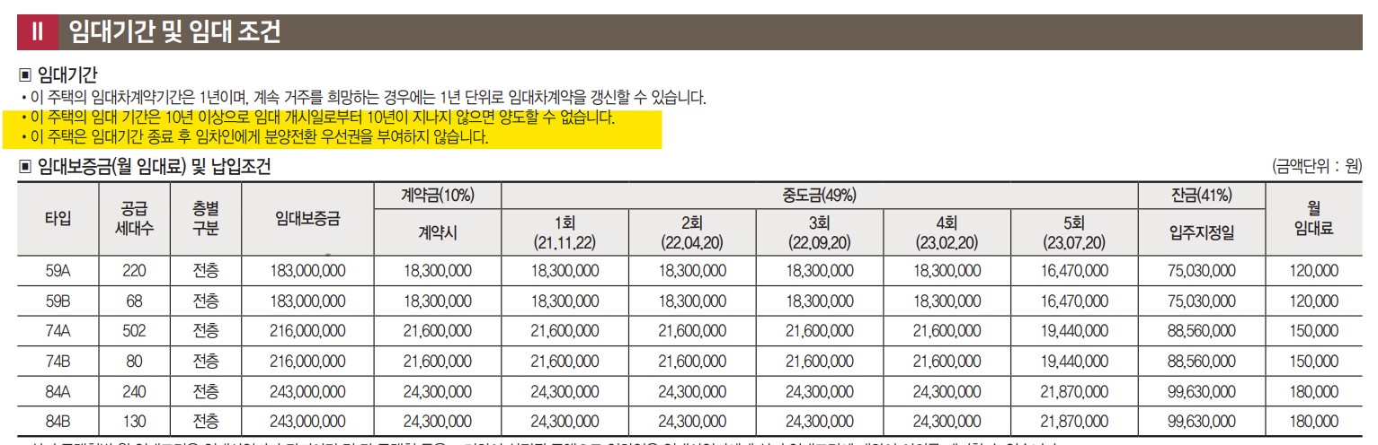월세형 임대보증금은 참고만 하시길 바랍니다. 확정분양가 및 전세형 보증금은 당첨자에게 개별 안내할 예정이라고 합니다. 전세형 계약 시 분양전환 권리가 있다고 하니, 당첨이 된다면 해당 내용을 꼭 확인하시길 바랍니다.