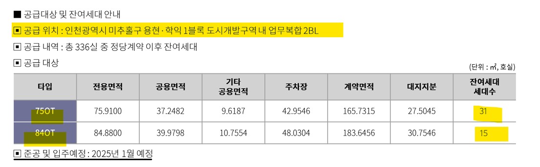 | 잔여세대 | 75OT 31세대 84OT 15세대 |